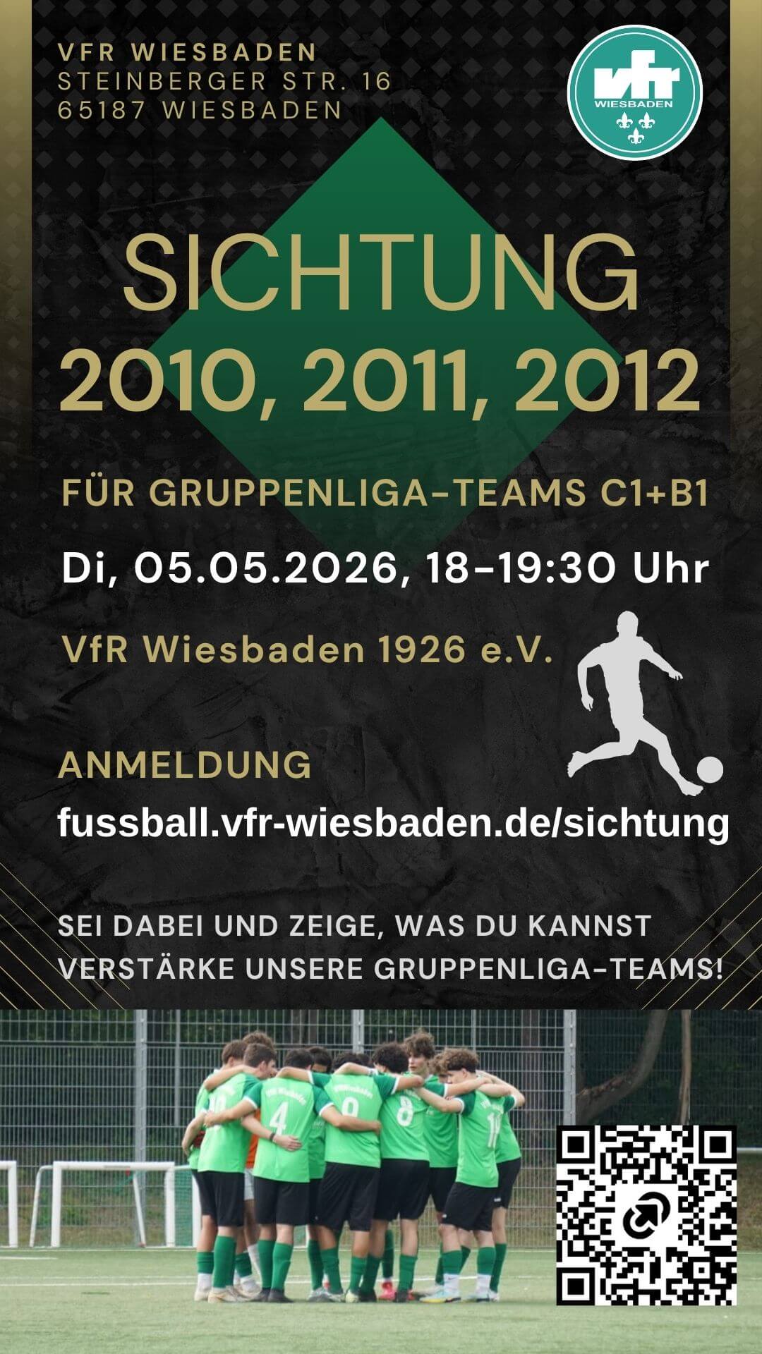Der VfR sucht talentierte Spieler und Torhüter, die unsere zukünftige C1 und B1 unterstützen.